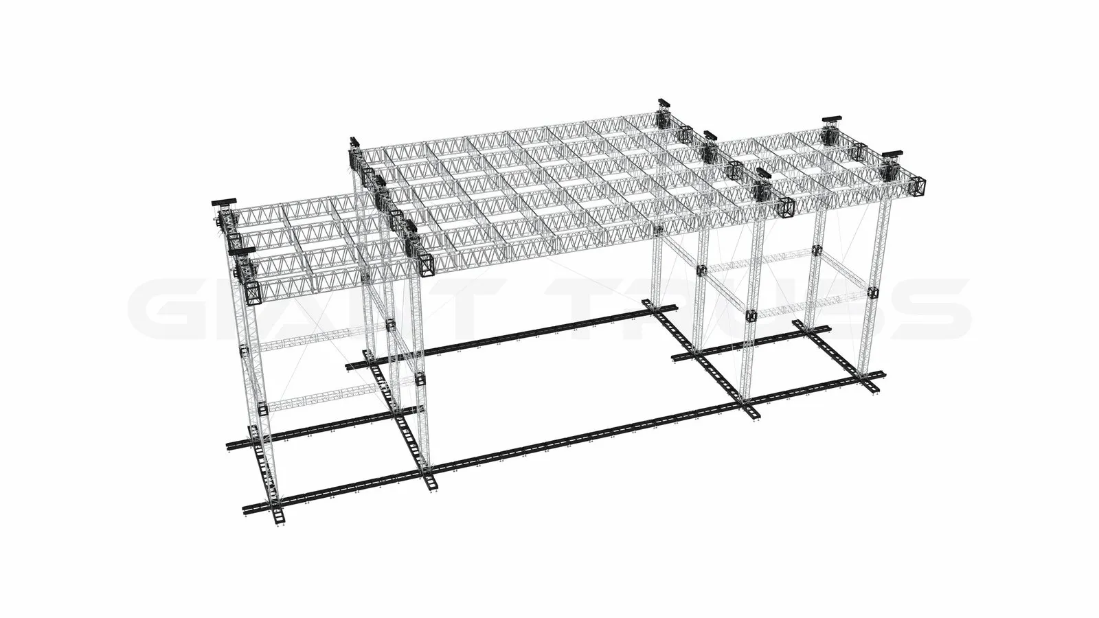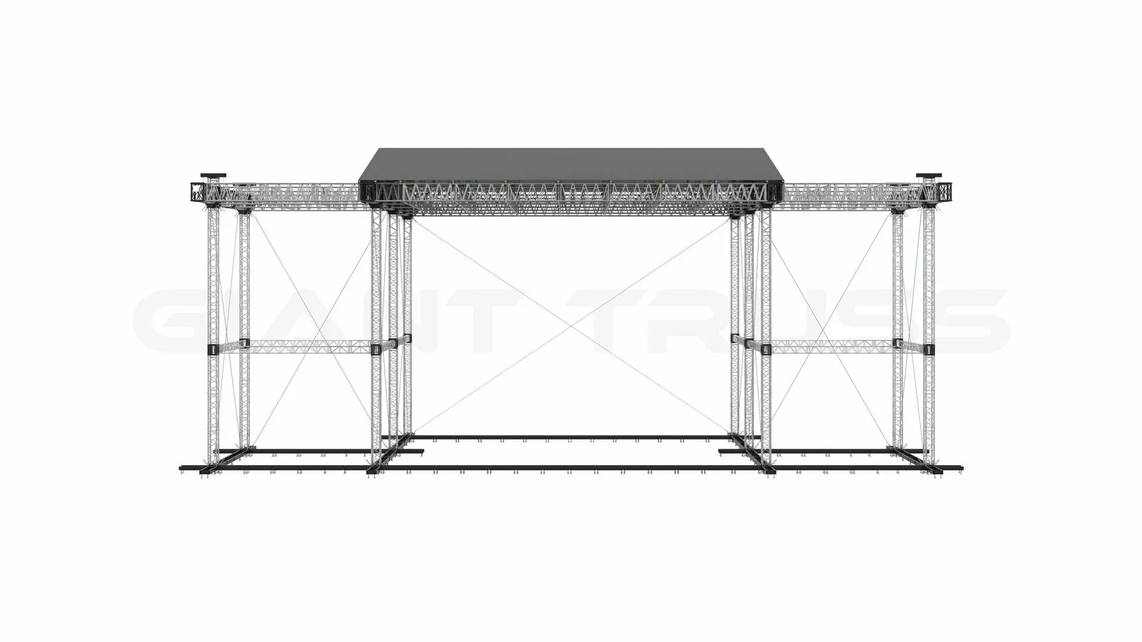 This truss system is specifically designed for heavy-duty applications, making it an ideal choice for the mother grid of a large-scale event structure like the