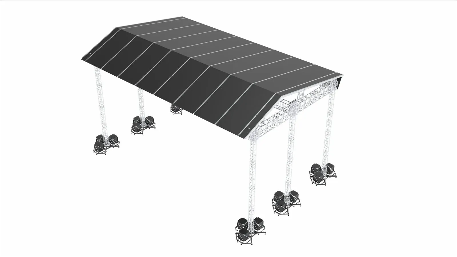 India’s biggest and strongest pitch roof truss system The DDR85 Roof consist of a DT X Ground Support on Tweleve SST48 Towers and a Roof Structure of