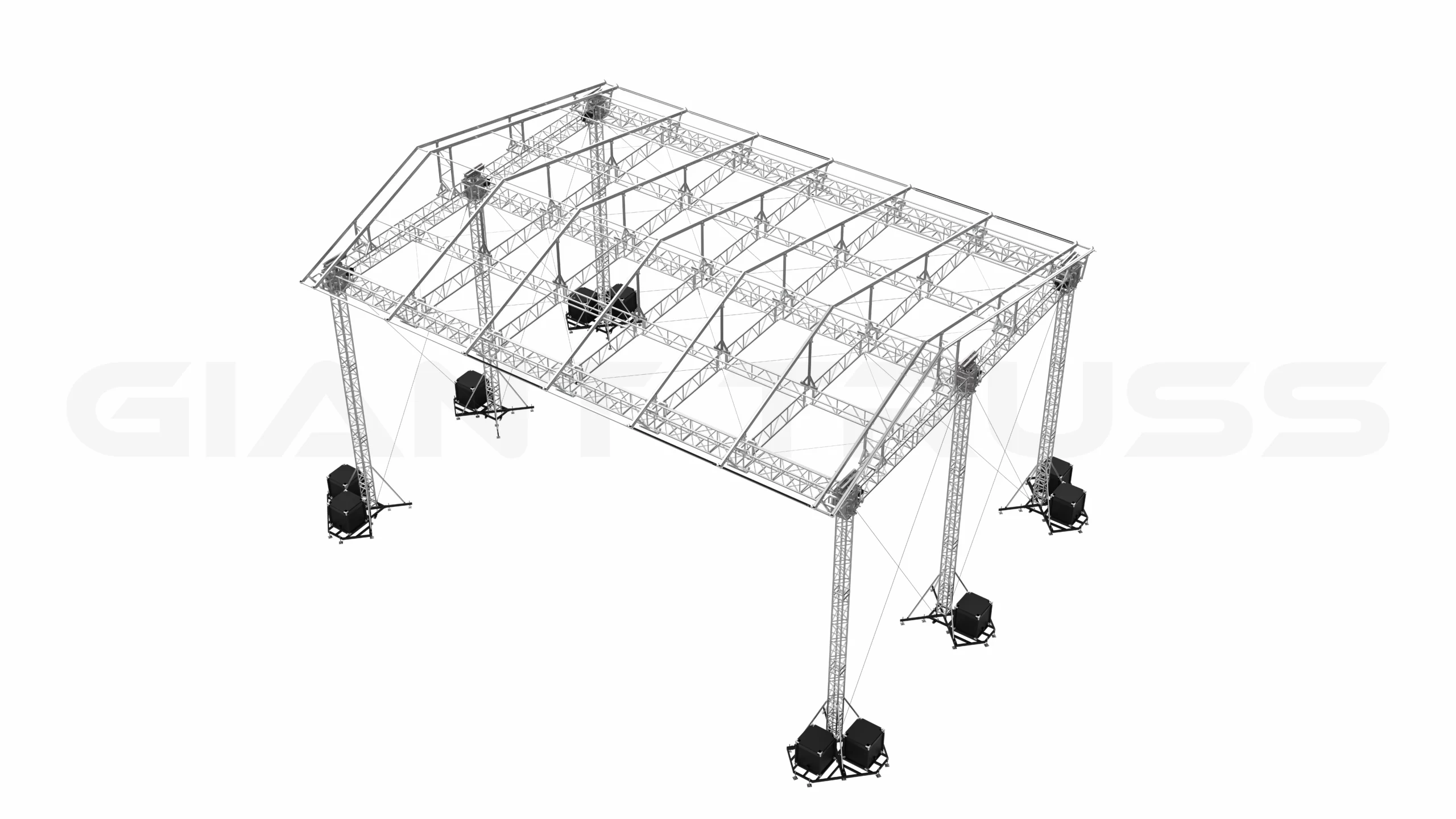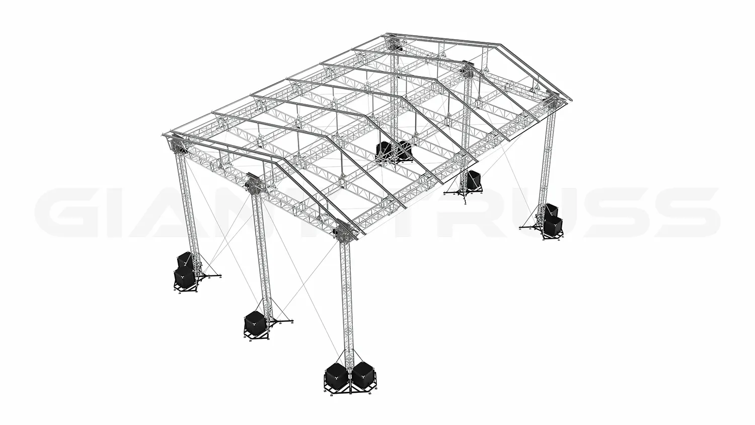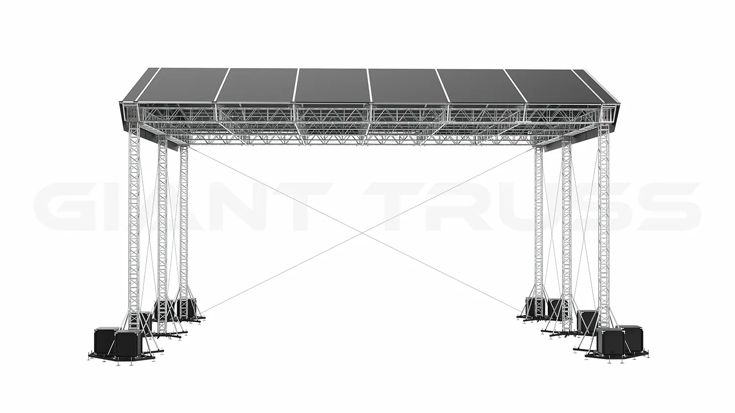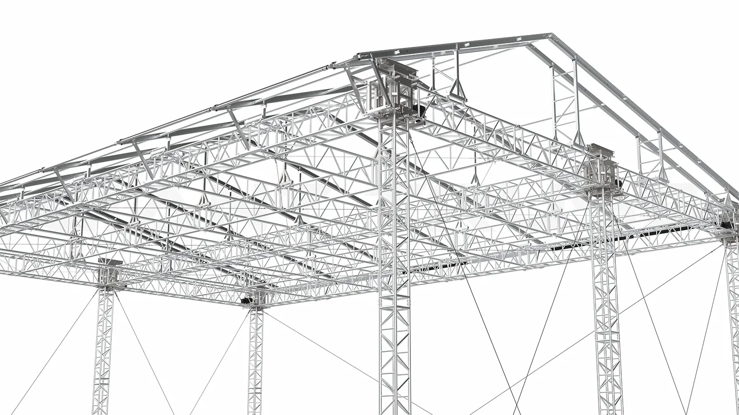 The SR60 Roof is a tower-based structure that utilizes a LD38 Ground Support and four SST38 Towers, along with a ST Truss Roof Structure. It features a