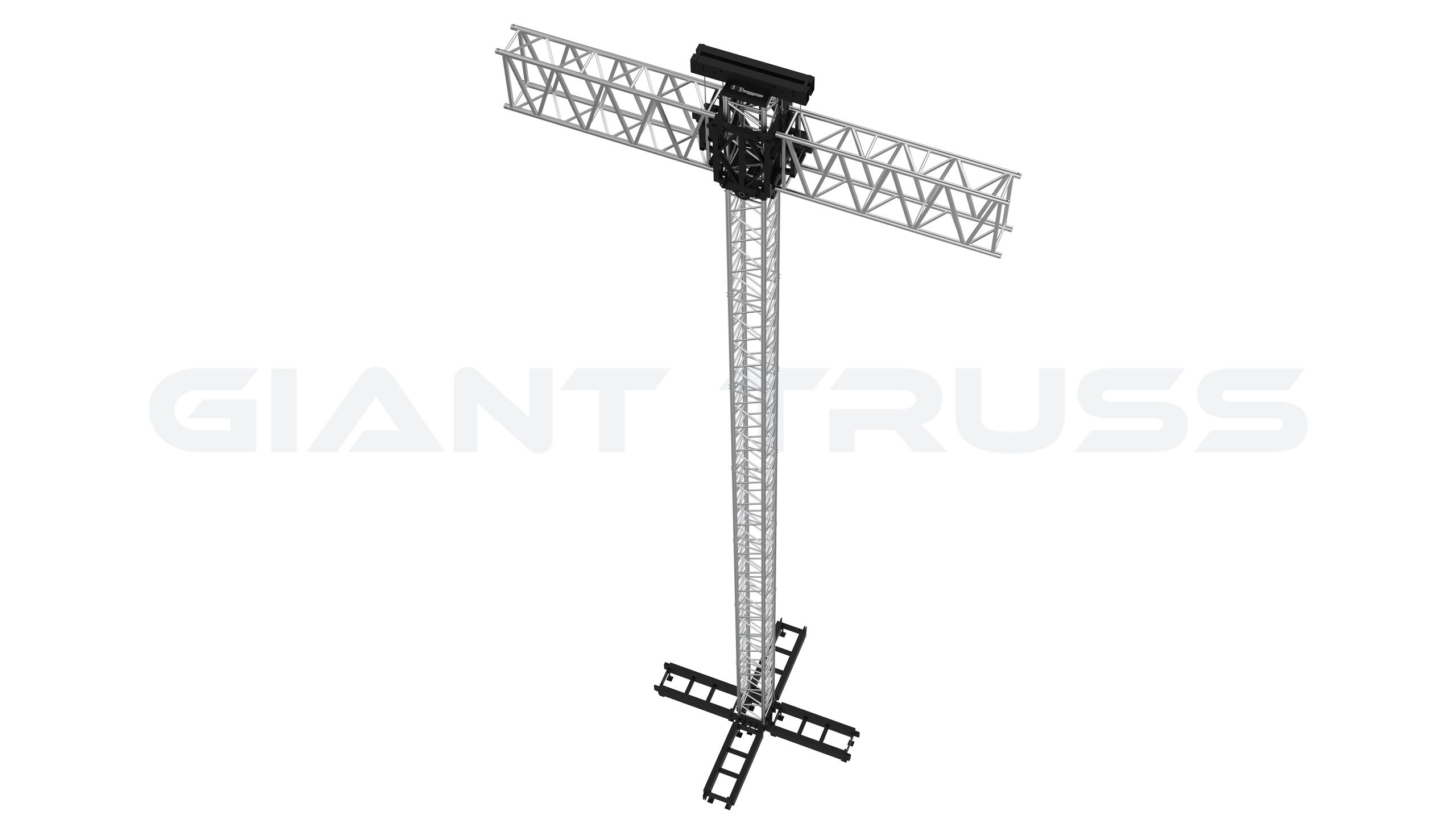 The SST-45 Tower is based on 300mm x 300mm vertical beam that allows the safe, quick lifting of regularly loaded horizontal truss to their service height. In terms of static, the SST-45 Tower is designed for a high exural- and pressure strain. It is provided with aluminum (6082- T6). Top frame and sleeve block. Base is made of steel to provided maximum ground traction needed due to it’s weights and supports. Dual height adjusted on each ground support make it very rigid structure to be used indoor or outdoor.