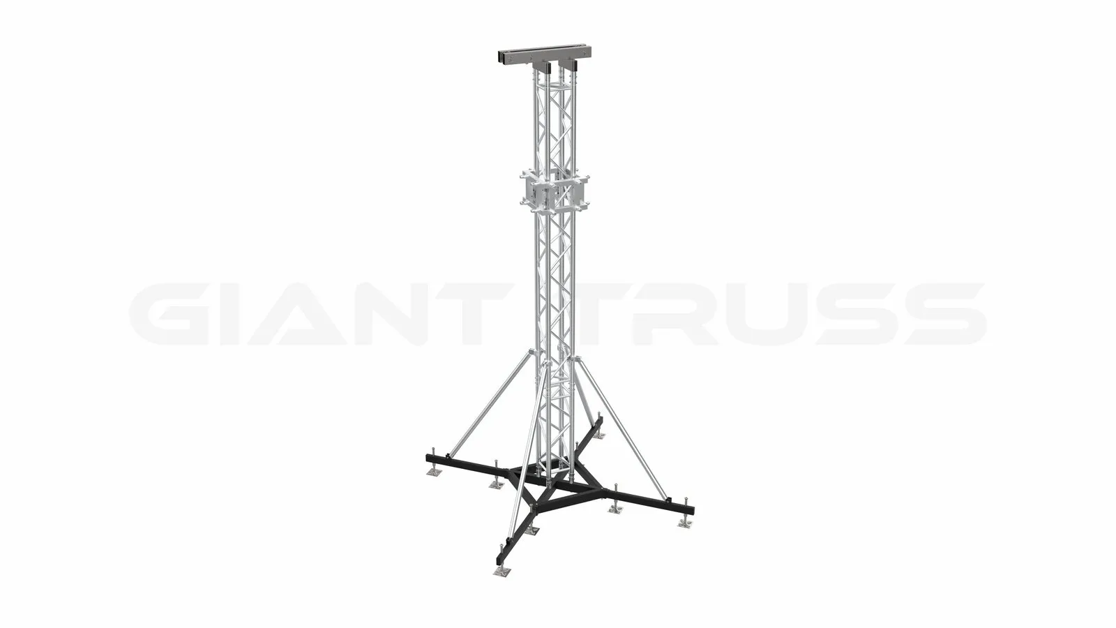 The SST-30 Tower is based on 300mm x 300mm vertical beam that allows the safe, quick lifting of regularly loaded horizontal  truss to their service height. In terms of static, the SST-30 Tower is designed for a high exural- and pressure strain. It is provided with aluminum (6082- T6). Top frame and sleeve block. Base is made of steel to provided maximum ground traction needed due to it’s weights and supports. Dual height adjusted on each ground support make it very rigid structure to be used indoor or outdoor.